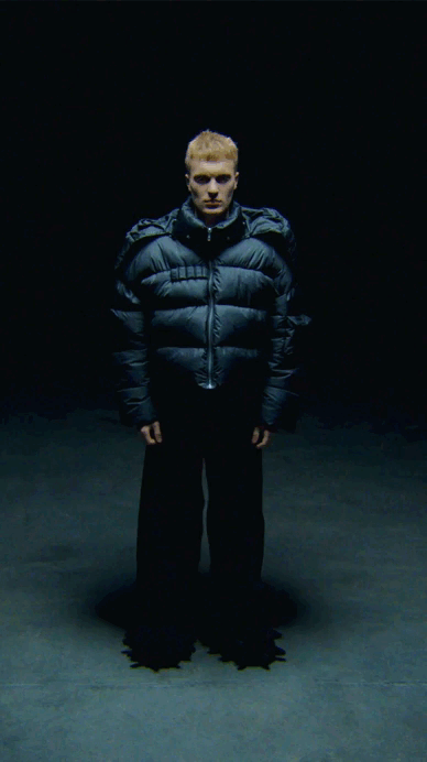 Нова модель пуховика з колекції Pre-AW'25 'Reborn', виконана з водонепроникного матеріалу. Наповнювач – еко-пух.
